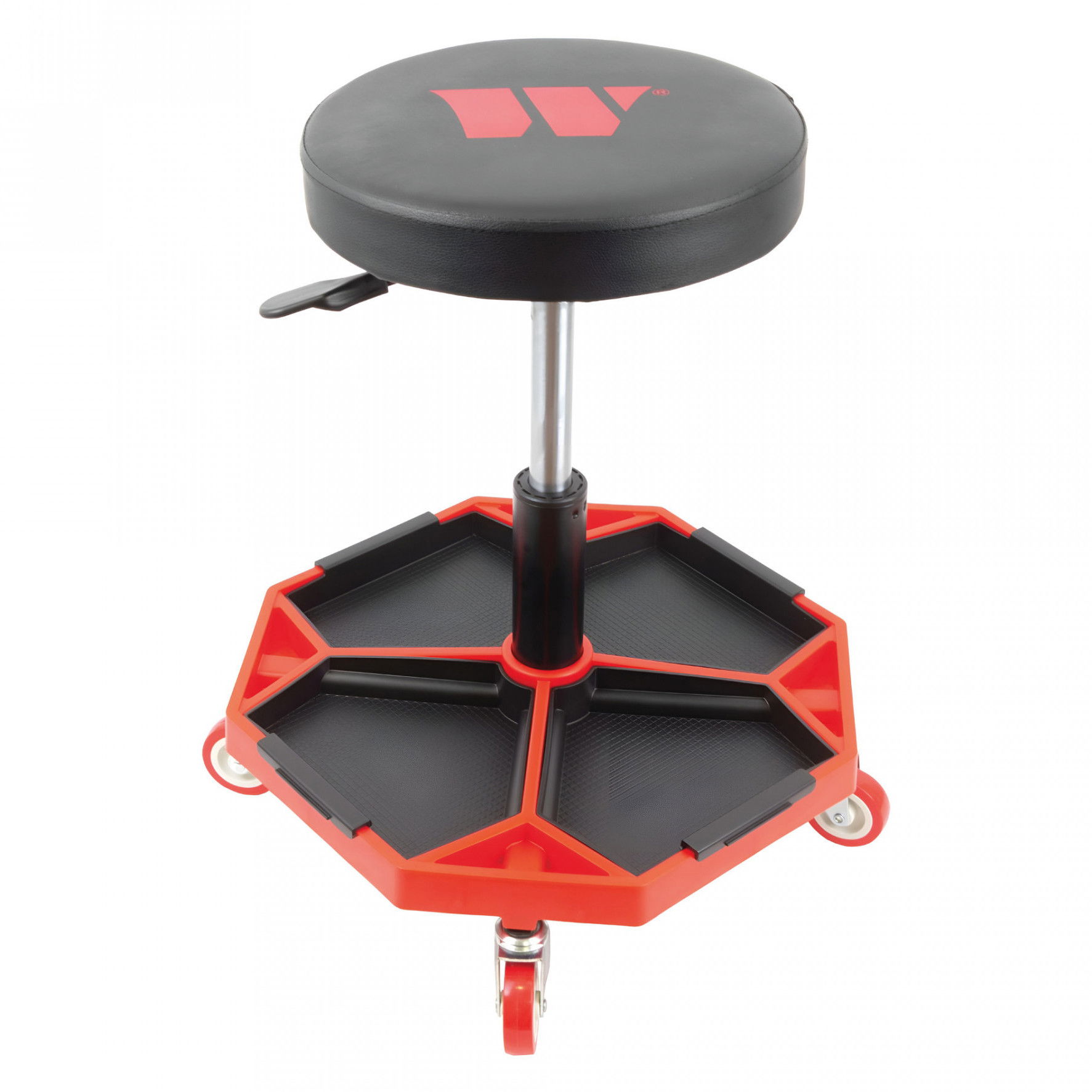 Welzh Werkzeug 4624-WW teleszkópos kerek szerelőszék 4 db kerékkel, szerszámtartóval, max. 136 kg