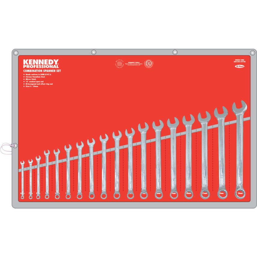 KENNEDY 6 - 24 mm professzionális csillag-villáskulcs készlet, 18 részes