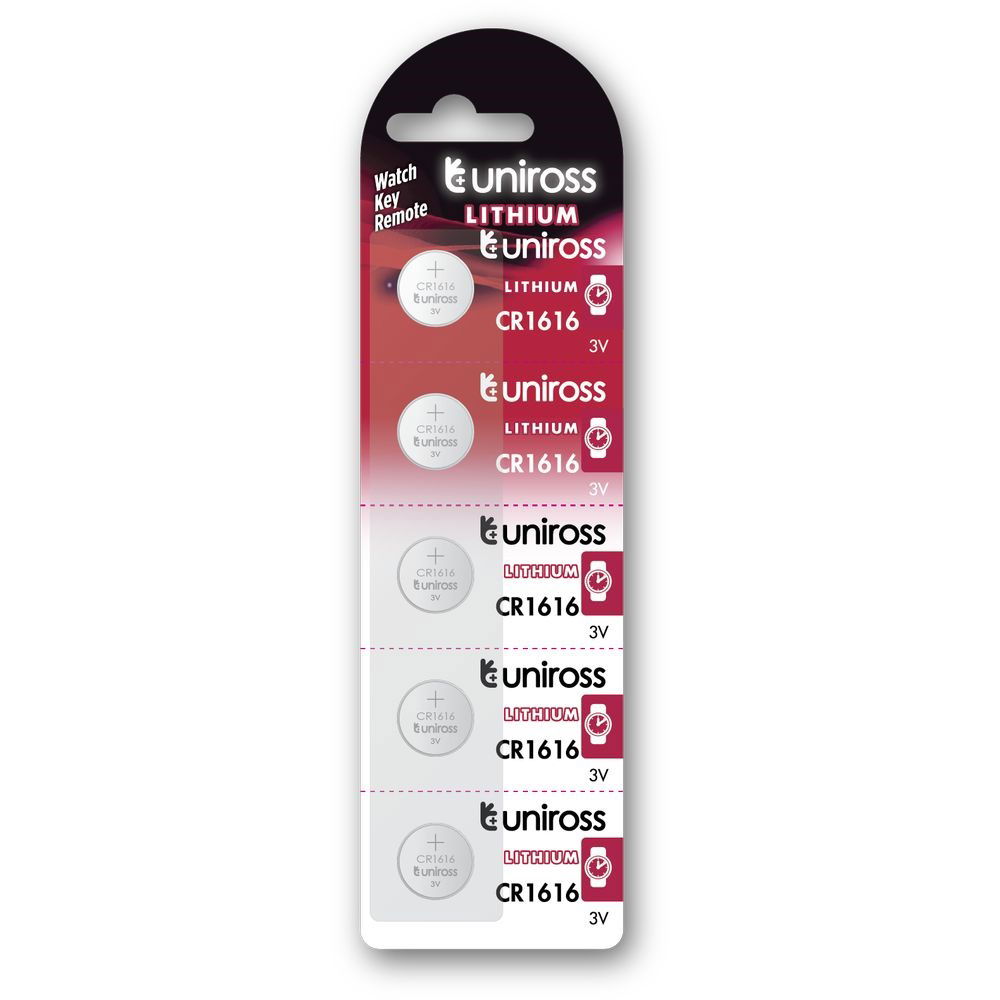 Uniross CR1616 3V lítium gombelem, 5 db/bliszter