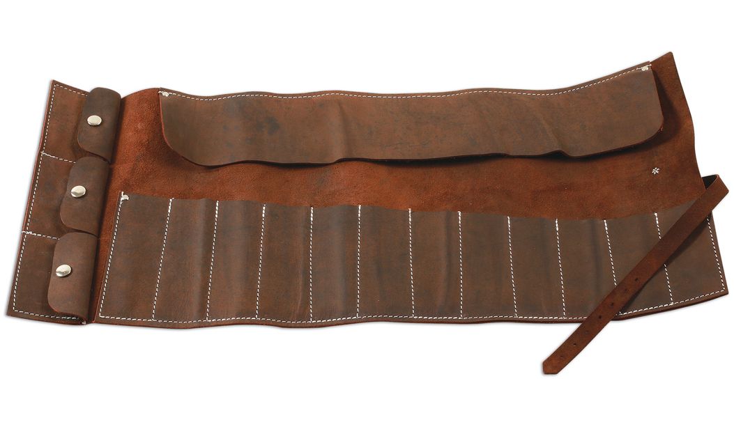 Gunson GUN-77168 retro villáskulcs tartó, feltekerhető, bőr, 12 + 3-zsebes *