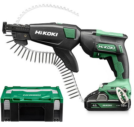 HiKoki W18DB-WCZ akkus levehető táras gipszkarton csavarozó (2 x 4.0 Ah Li-ion akkuval, Hitbox kofferben)